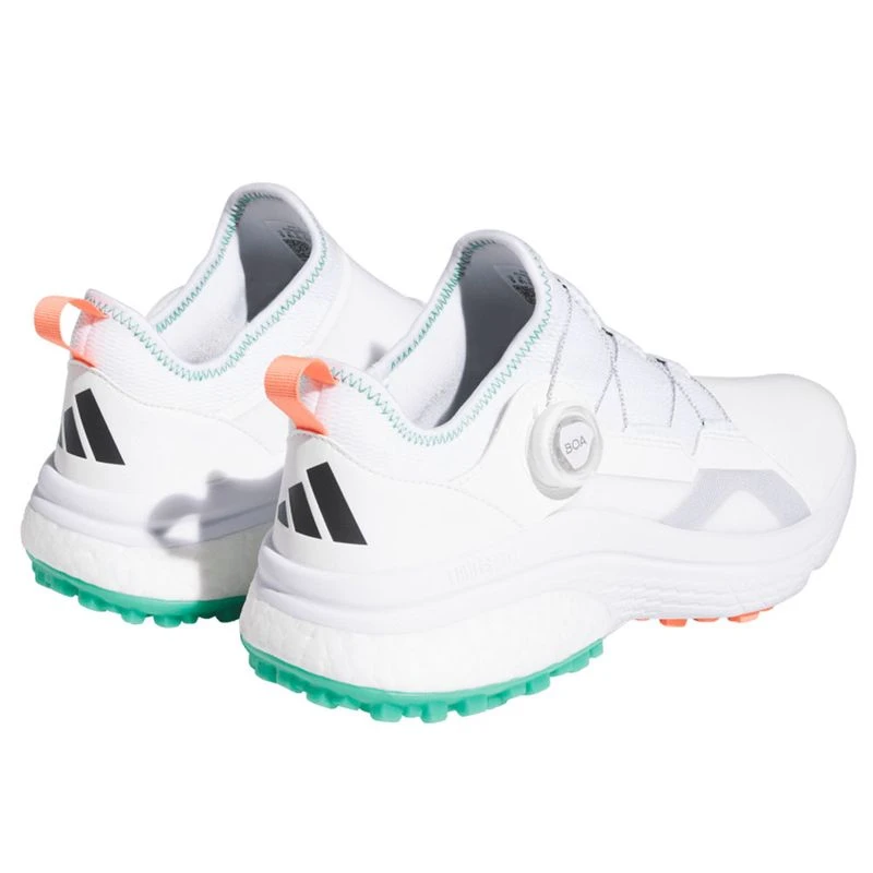These adidas golf shoes are made with precision and comfort in mind. Built with a responsive Lightstrike midsole and dropped-in BOOST heel, they offer endless energy return for all-day play. A micro-adjustable BOA® Fit System lets you find the perfect fit with the turn of a dial, so you’re always locked in before those key shots. The waterproof upper material helps your feet stay dry in any condition while the spikeless Gripmore® outsole provides easy, comfortable traction.