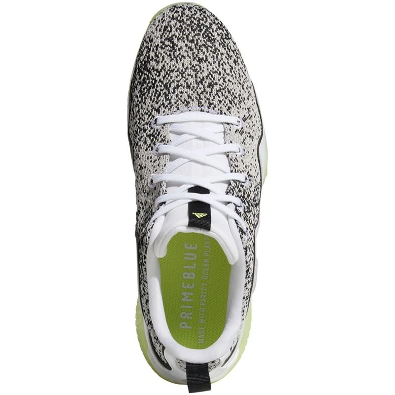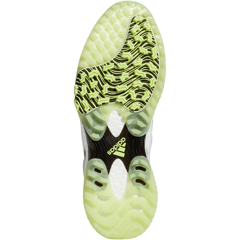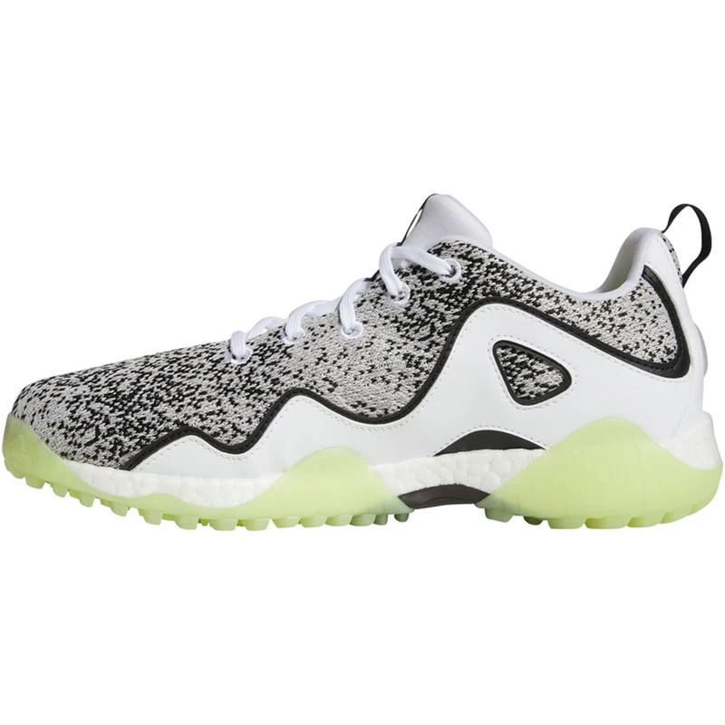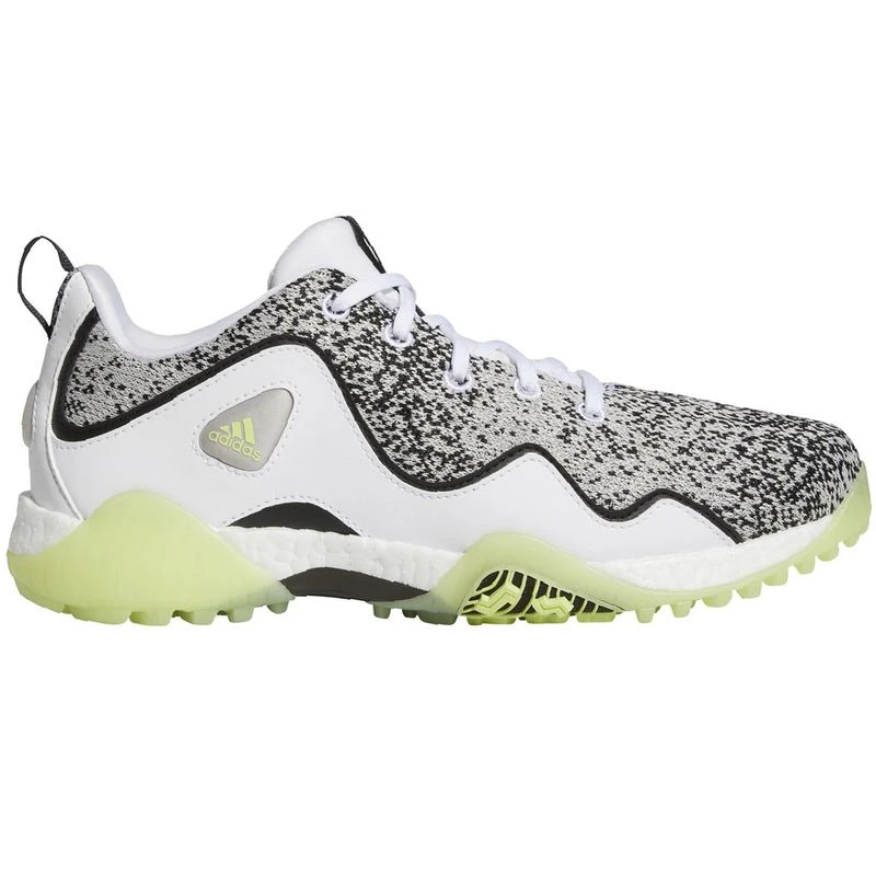 Make a disruptive statement on the course. The adidas Codechaos 21 Primeblue Spikeless Golf Shoes bring extreme comfort plus an energized feel to your game. A waterproof knit mesh upper with supportive overlays offers lightweight performance with a distinctive look. Full-length Boost gives you all-day energy on the course, while a spikeless Adiwear outsole with twist grip offers tour-level traction and stability.