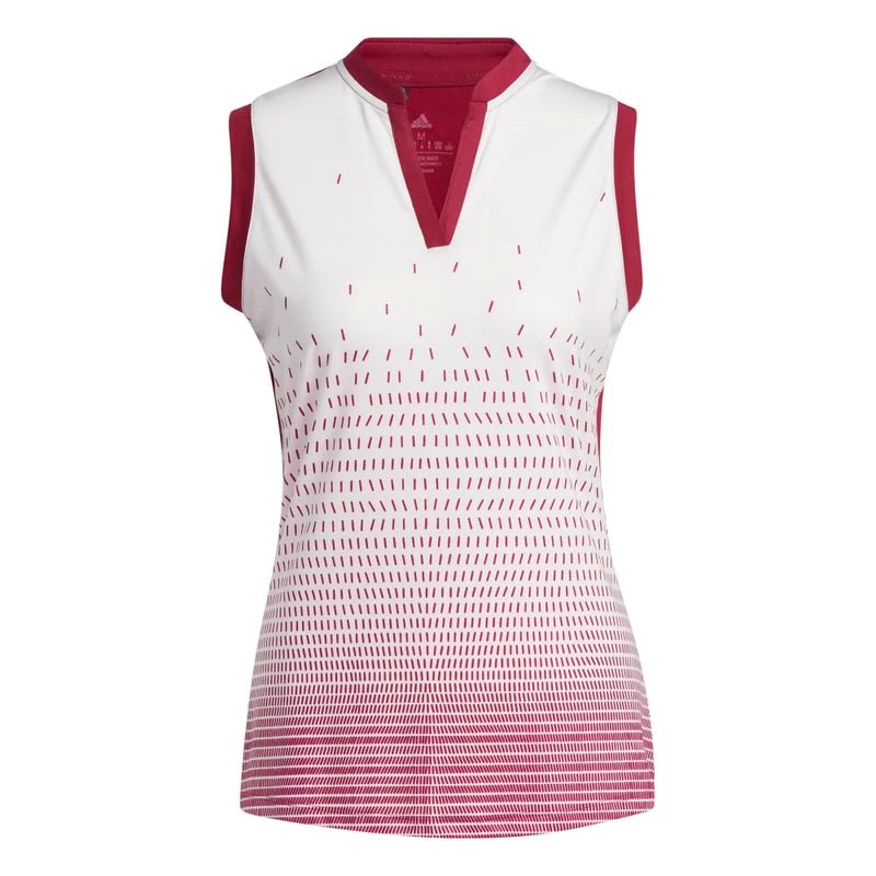 Elevate your look on the links in this adidas golf polo shirt. The lightweight fabric is made with moisture-absorbing AEROREADY to keep you dry. The sleeveless design has a V-neck collar and shaped hem for feminine style. A gradient graphic adds the finishing touch.