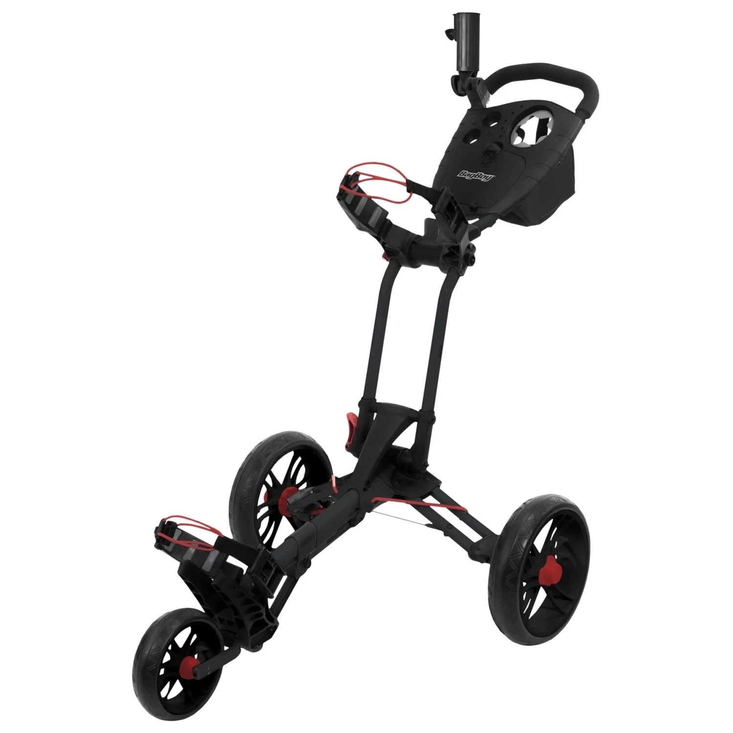 Transport your bag around the golf course with ease with the Bag Boy Spartan XL Push Cart. The Spartan XL features two oversize 13 inch rear wheels and a front wheel that will roll over the course with ease. There is an extra-deep scorecard console with built-in beverage holder and accessory bag under the scorecard console that is useful for storing tees or a cell.