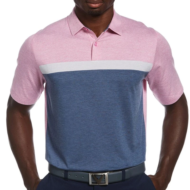 On or off the course, this soft touch men’s golf shirt from Callaway helps you look and feel your best. The stretch fabric is enhanced with SwingTech™ technology, letting you maximize your range of motion with every shot. Color blocking adds fresh sporty style, and with 30% recycled material, this double-knit sweater is an eco-friendly choice you can feel good about.