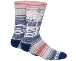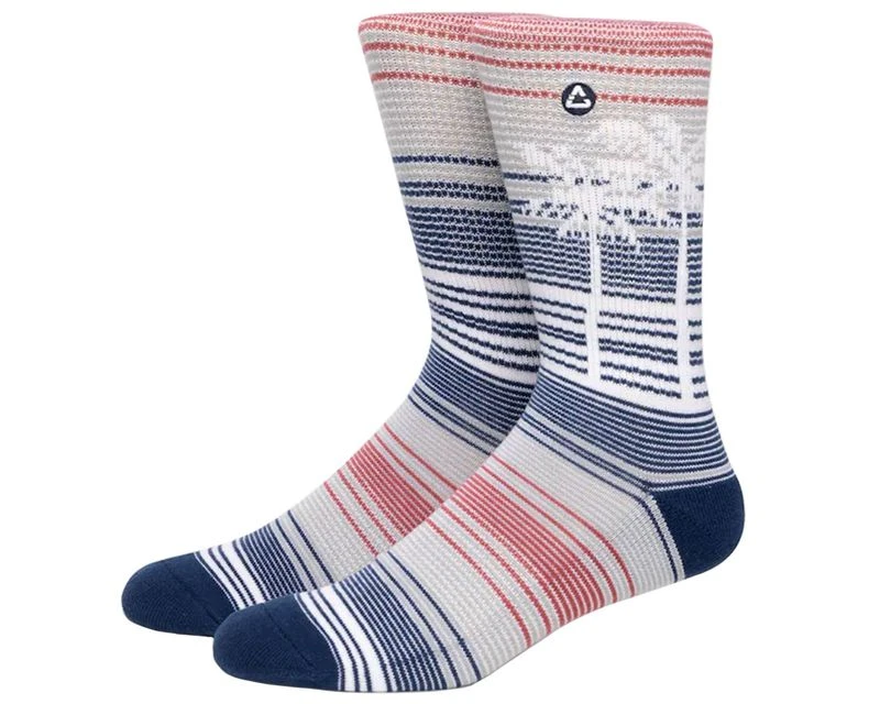 With an ultra-cushioned sole, no-slip cuff, and odor-block fabrications, the WARMER WATERS crew sock delivers support and breathability, all in a modern stripe pattern accented by palm trees.