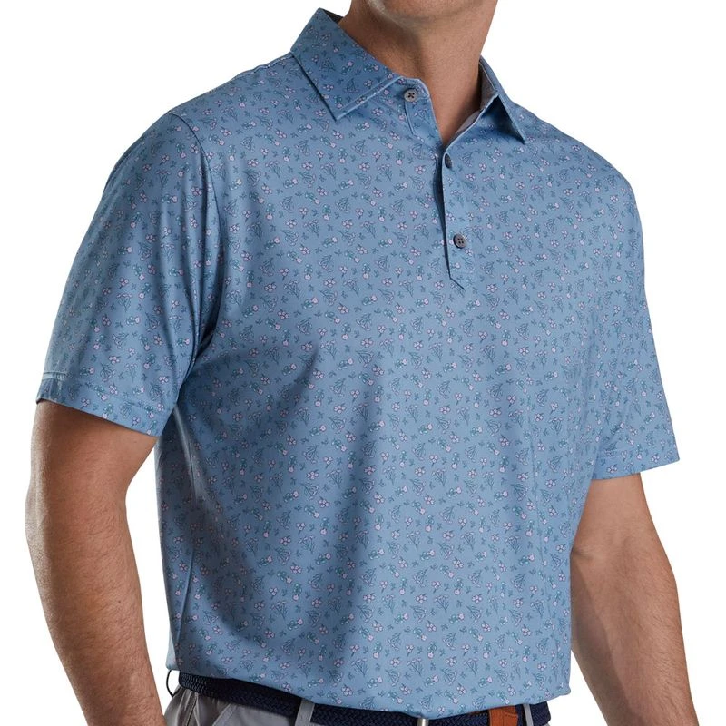 The FootJoy Mini Floral Lisle Self Collar Golf Polo displays an allover floral print that lets you stand out on of off the course. This shirt is made with 4-way stretch that allows you to move comfortably and easily in any direction and is moisture-wicking for comfort throughout the day.