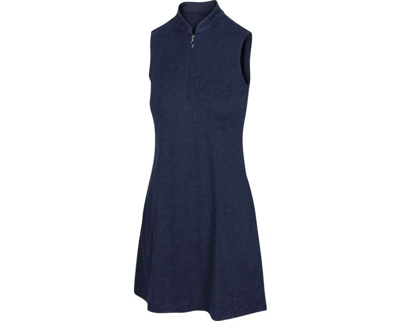 The Flare Zip Dress from GN Women’s is an essential style crafted from 100% Polyester Jacquard fabric featuring PLAY DRY moisture-wicking technology and UPF 50+ sun protection. Designs details include a boomerang collar, iridescent zipper pull, princess seams, flared skirt, plus two front pockets and one back pocket to tote small essentials.