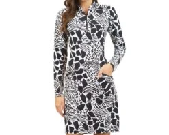 IBKUL Women’s Long Sleeve Mock Neck Dress – Bianca Print