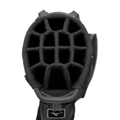 The Mizuno Staff Golf Cart Bag is based on the bag used by Mizuno professionals worldwide. Featuring a 14-way top, this bag includes an integrated putter well and individual full-length dividers. Keep everything organized with 7 pockets, full-length apparel pockets, removable ball pocket, added fleece-lined valuables pocket and an elastic strap for your tees and markers. Added insulated drink holder keeps you hydrated and refreshed out on the back nine. The Mizuno Tour 14-Way Staff Golf Stand Bag provides ample storage for all of your on-course needs.