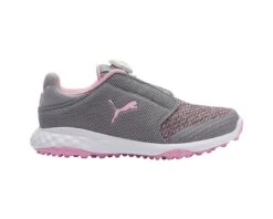 Inspired by the adult’s Grip Fusion Sport, the PUMA Girls’ and Boys’ Grip FUSION Sport DISC Spikeless Golf Shoes boasts an extremely comfortable fit, super breathable performance mesh upper and sporty midsole that will keep you cool and comfortable all-day long. Integrated with PUMA’s proprietary DISC closure system it’s a must have for both parents and children.