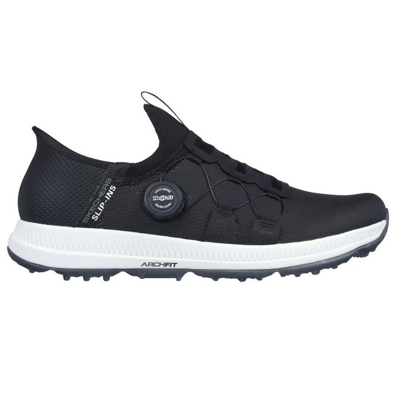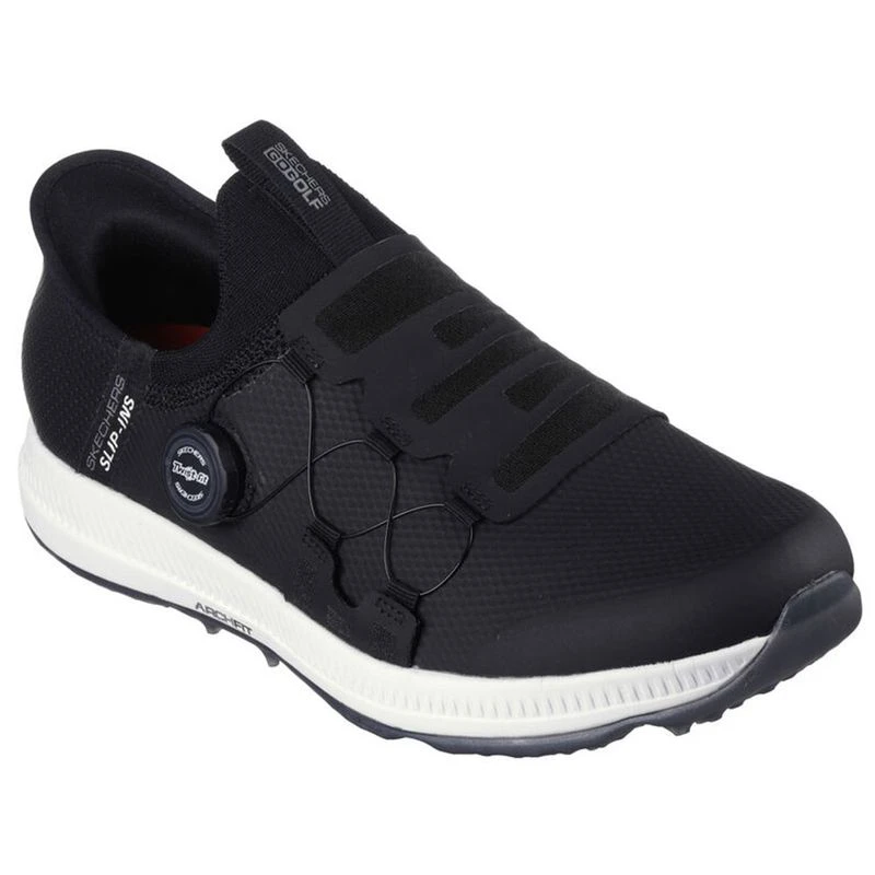 Handle the course with the best in comfort technologies wearing Skechers Hands Free Slip-insâ„¢ GO GOLF Elite 5 – Slip ‘In. Designed with our exclusive Heel Pillowâ„¢. This waterproof golf shoe features a synthetic upper with a unique Twist Fitâ„¢ closure, removable Arch Fit® insole and a GRIPFLEX spikeless traction outsole.